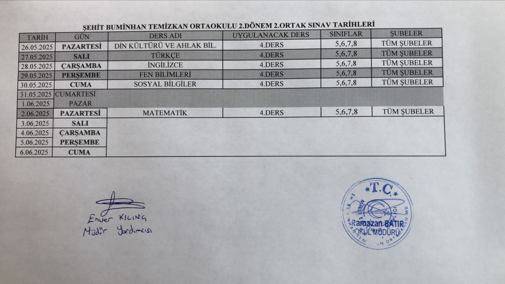 Okul haziran sınav takvimi